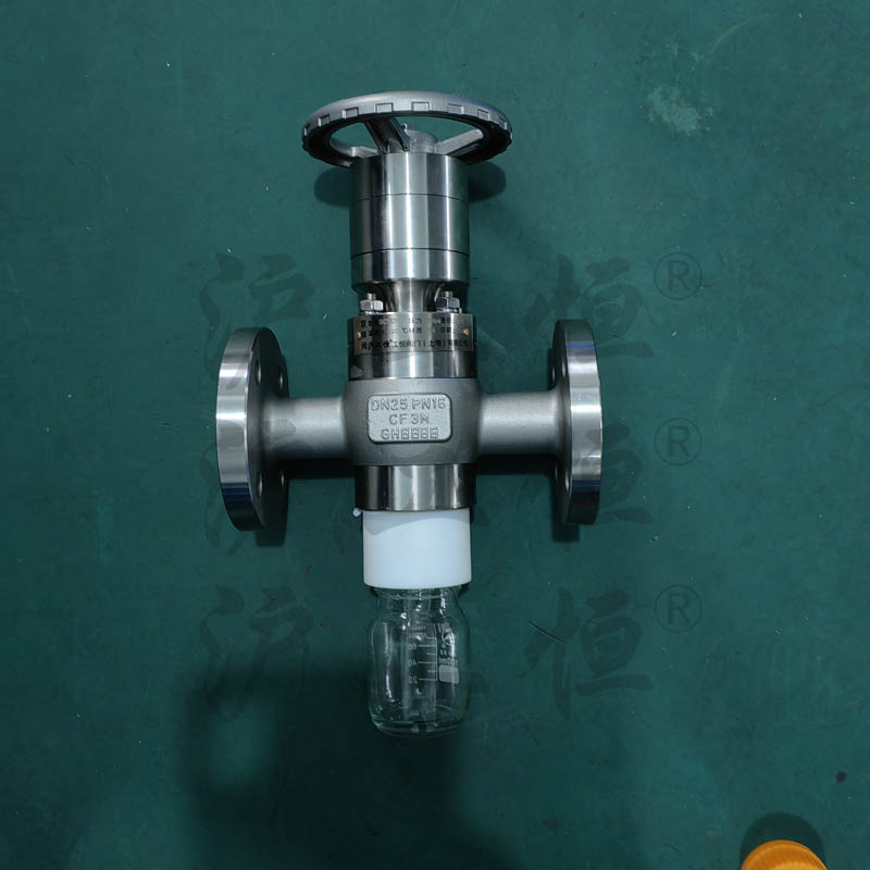 在线直通取样阀解决了现有取样阀的复杂结构,无滞留取样阀主要有阀体、阀芯、阀杆、阀座、取样瓶组成,取样瓶为可拆卸设计,试样通过取样口进入取样瓶内,避免污染试样,流道无流阻、无滞留设计,不影响流量,阀杆通过手轮、电动执行机构、气动执行机构旋转带动阀杆及阀芯,阀芯上下提拉,可精确控制流量,实现试样进入取样瓶内,取样瓶可选透明和避光两种,本取样阀广泛应用在制药、化工、食品行业。